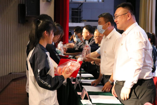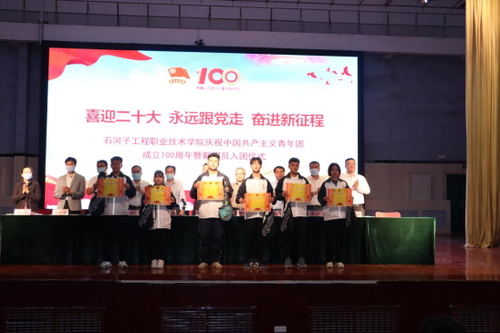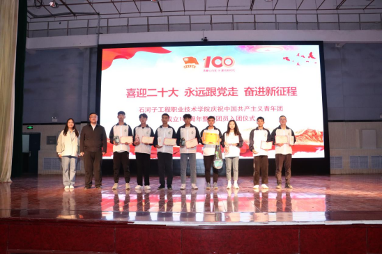 为表彰先进,树立典型,在本次入团仪式上由学院副院长靳录洋同志宣布了荣获学院2021年度“优秀共青团员”“优秀共青团干部”“五四红旗团支部”的先进集体和优秀个人获奖名单;工会主席王胜利同志宣布了荣获兵团级“我爱我的祖国·书画弘法治”书画比赛和“与法同行”主题征文获奖名单。获奖代表依次上台领奖,与会领导为获奖师生代表颁奖并合影留念。